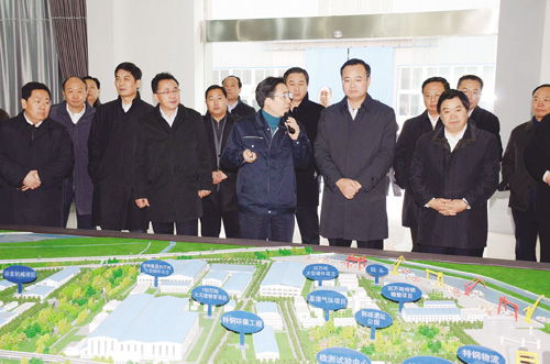 隨后,周春雨、白金明一行又趕赴淮安市,進車間,看項目,問規(guī)劃,先后來到淮安特鋼高新產(chǎn)業(yè)園、鹽堿科技產(chǎn)業(yè)園、淮安科教產(chǎn)業(yè)園、淮安生態(tài)新城區(qū)以及新型工業(yè)化成果展示中心進行參觀考察。