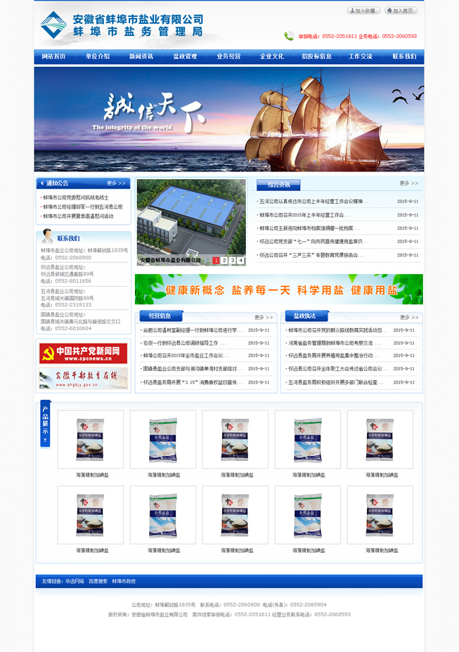 多年來(lái),蚌埠鹽業(yè)認(rèn)真貫徹落實(shí)國(guó)家《食鹽專(zhuān)營(yíng)辦法》、《食鹽加碘消除碘缺乏危害管理?xiàng)l例》,始終以食鹽市場(chǎng)安全穩(wěn)定為天職,忠實(shí)履職,恪盡職守。一方面對(duì)全市鹽業(yè)市場(chǎng)進(jìn)行鹽政監(jiān)管,嚴(yán)厲打擊鹽業(yè)違法犯罪,全力維護(hù)食鹽市場(chǎng)安全穩(wěn)定;另一方面負(fù)責(zé)組織開(kāi)展食鹽專(zhuān)營(yíng),致力為消費(fèi)者提供安全、優(yōu)質(zhì)、放心的加碘食鹽,確保全市371萬(wàn)人口的食鹽供應(yīng)。與此同時(shí),蚌埠鹽業(yè)主動(dòng)適應(yīng)市場(chǎng)需要,積極拓展非鹽經(jīng)營(yíng),在發(fā)展的道路上不斷深化改革,自主創(chuàng)新,產(chǎn)業(yè)結(jié)構(gòu)轉(zhuǎn)型邁出堅(jiān)實(shí)步伐,全區(qū)總資產(chǎn)已近8000萬(wàn)元,現(xiàn)有經(jīng)營(yíng)倉(cāng)儲(chǔ)面積約1.5萬(wàn)平米,在建倉(cāng)庫(kù)1萬(wàn)余平米。2014年實(shí)現(xiàn)銷(xiāo)售收入14762.69萬(wàn)元,其中食鹽銷(xiāo)售4967.40萬(wàn)元,非鹽銷(xiāo)售9795.20萬(wàn)元、實(shí)現(xiàn)利稅1124.52萬(wàn)元,經(jīng)濟(jì)社會(huì)效益居全省同行領(lǐng)先。先后榮獲全省鹽業(yè)系統(tǒng)先進(jìn)單位五連冠、安徽省勞動(dòng)保障誠(chéng)信示范企業(yè)、安徽省衛(wèi)生先進(jìn)單位、檔案管理考核安徽省一級(jí)單位、蚌埠市A級(jí)納稅信用單位、蚌埠市第十四屆文明單位等多項(xiàng)榮譽(yù)稱(chēng)號(hào)。
